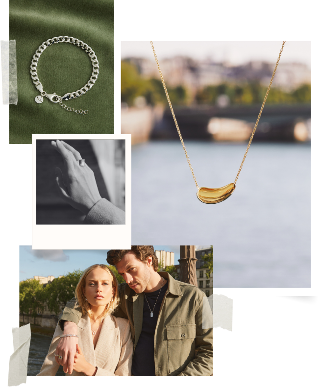 Every texture, curve and gemstone in La Muse holds a fragment of Paris. The Marais Bracelet and Marais Ring carry the tactile beauty of cobblestone streets, while the fluid Eau Earrings echo the city’s iconic Wallace Fountains. Spring blooms come to life in rose quartz, green onyx, rainbow moonstone and amazonite, as seen in the Fleur Earrings and Fleur Pendants. The flowing lines of the Reverie Necklace capture the meandering Seine, so when you wear La Muse, you’re carrying the city’s romance with you.